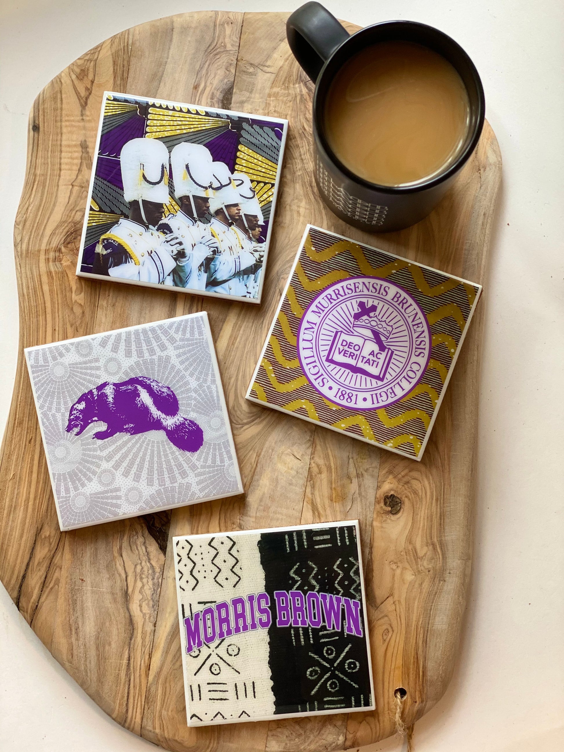 This set of four coasters features images from Morris Brown College. #PurpleHaze